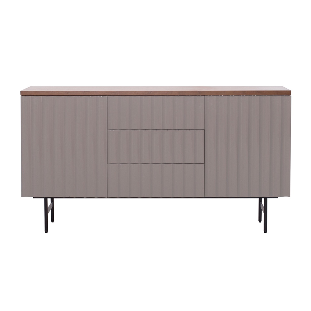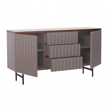 CB-286-石色亮光主體+胡桃木實木拼面板+黑啞光金工件