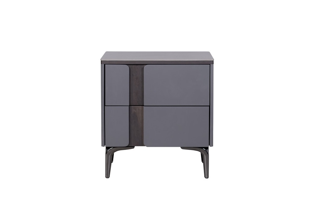 特洛伊灰巖板面板+灰色啞光主體+煙熏色木紋裝飾條+槍色金工腳