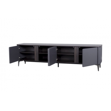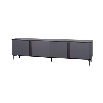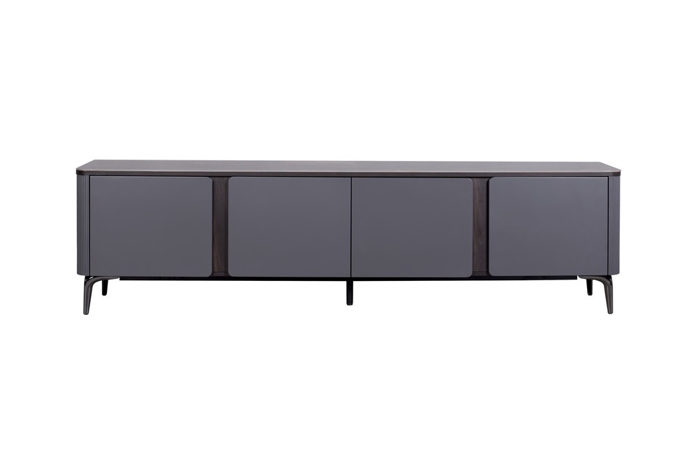 特洛伊灰巖板面板+灰色啞光主體+煙熏色木紋裝飾條+槍色金工腳